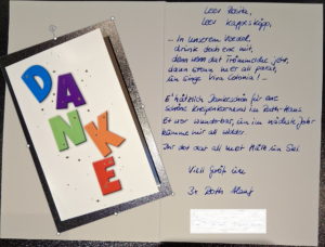 Was uns wirklich sehr gefreut hat, ist die hier abgebildete Karte, in welcher sich ein Ehepaar aus Bedburg-Rath für