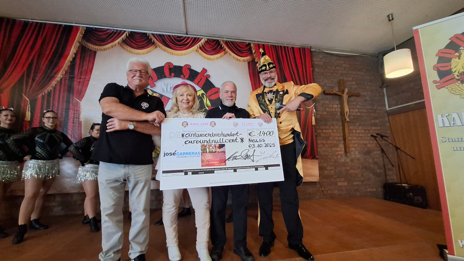 Ein besonders bewegender Moment war die Übergabe eines Spendenschecks über 1.400 Euro an die José Carreras Stiftung für leukämiekranke Kinder. Die Spendenaktion wurde von Geschäftsführer Jürgen Schmitz im Rahmen des 25-jährigen Jubiläums der Kappesköpp initiiert – ein starkes Zeichen für das soziales Engagement der Kappesköpp.